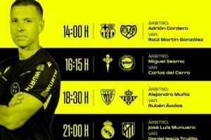 体育资讯3月21日讯 本周末,西甲第29轮全面开战,西班牙足协官方公布了本轮比赛部分场次的裁判安排,其中,穆努埃拉执法马德里德比关键战,科尔德罗主裁巴萨主场迎战巴列卡诺。