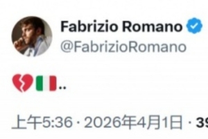 意大利无缘世界杯,罗马诺社媒:心碎